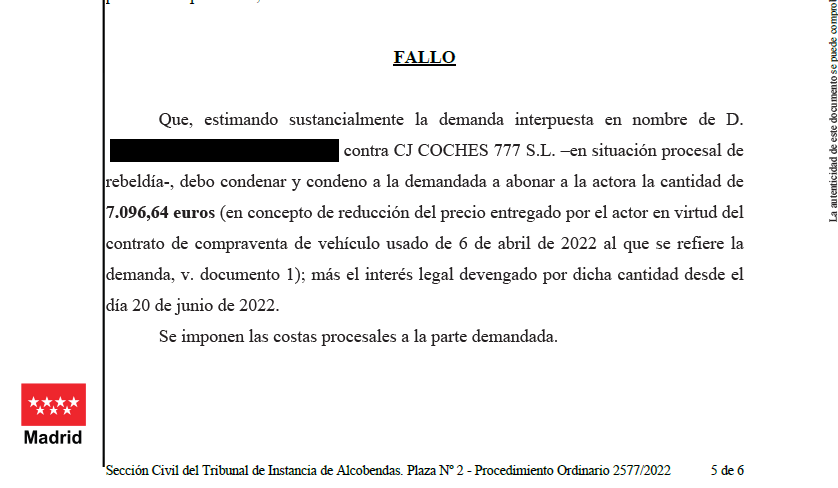 El Juzgado de Primera Instancia nº 2 de Alcobendas, en Sentencia nº 82/2026, estima sustancialmente nuestra demanda en materia de falta de conformidad en la compraventa de vehículo usado.